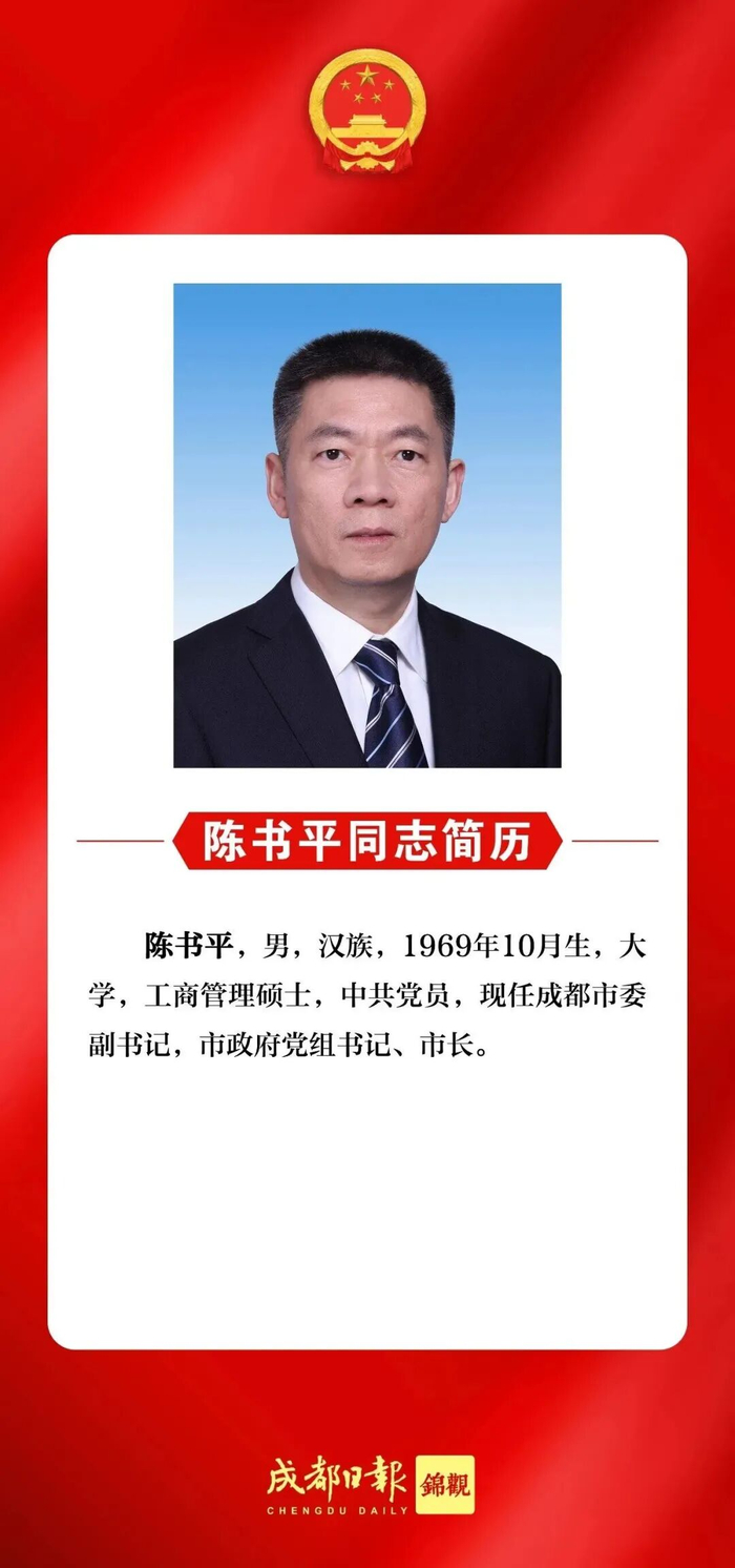 1月31日上午,在成都市第十八届人民代表大会第四次会议上,陈书平当选为成都市人民政府市长。