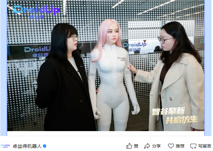 该机器人身高 1.65 米,体重约 32 公斤,采用环保硅胶材质表皮,具备温度调节功能(维持 32-36℃)。