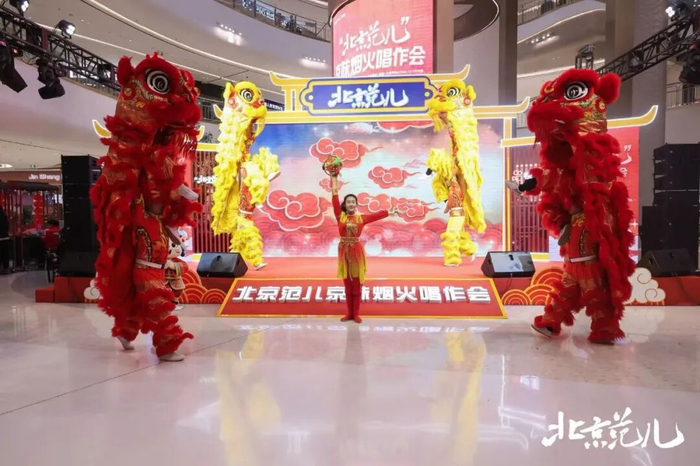 活动开场,深受网民欢迎的舞狮妹团队带来锣鼓喧天、狮影灵动的表演,并邀请现场观众体验舞狮的乐趣,把福气与热闹送到每个人身边。北京杂技团上演顶花坛、抖空竹等绝活,把老北京庙会市井风情带入现代化的商圈。“歌唱新时代·声动新北京”北京主题歌曲征集活动的优秀作品《我从小在北京胡同里长大》《灵雪漫》也在唱作会上,由深受年青人喜欢的假日乐队进行现场“首秀”,实现两大群众文艺活动的首次“牵手”。民乐《茉莉花》《十面埋伏》《花好月圆》、舞蹈《印象伞舞》等国风浓郁,让现场气氛持续升温。