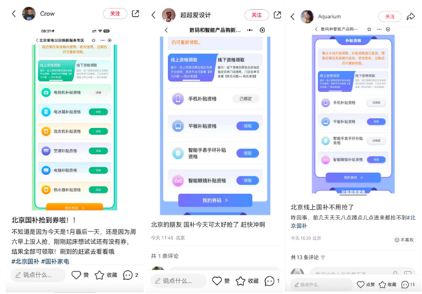 今天,不少网友惊喜发现,北京地区的线上国补资格可以轻松领到了,不论是手机、平板、电脑、冰箱、洗衣机等多品类国补资格都能一键领取,无需再争抢拼手速了!