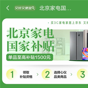 第二步,打开京东APP或微信京东购物小程序,搜索“北京家电以旧换新”进入北京国补会场,绑定国补资格码;之后可以在京东的北京活动会场浏览选购,也可直接搜索符合要求的商品选购,新机收货地址需在北京市内,即可享受补贴。