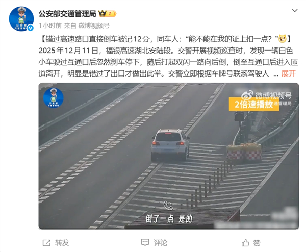 错过高速路口倒车被记12分 同车人更离谱:能不能在我证上扣一点?