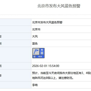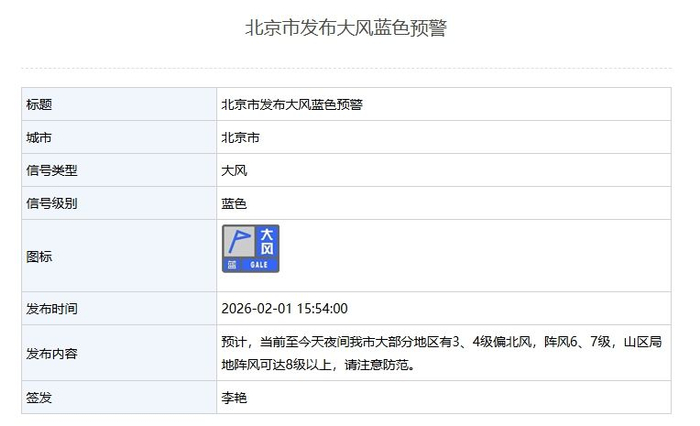 阵风6、7级!北京市发布大风蓝色预警