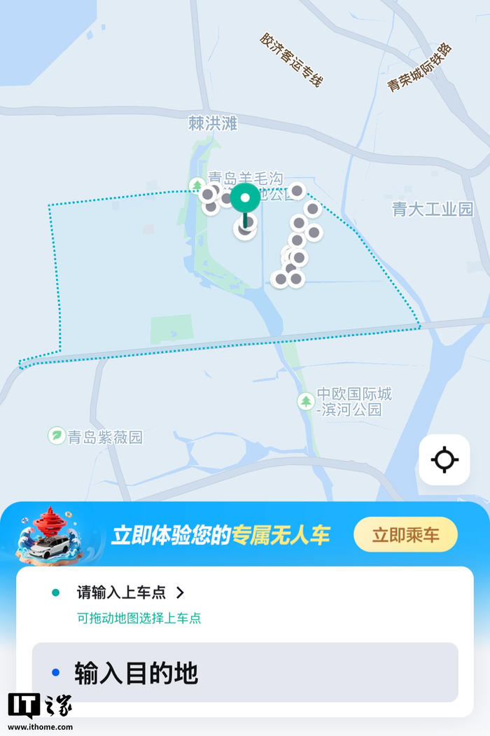 IT之家注:根据萝卜快跑小程序显示的运营区域,以其中“青岛羊毛沟花海湿地公园”作为起点,相应区域距离城阳市区约 10 公里、距离胶东机场约 22 公里、距离附近青岛地铁 8 号线车站约 13 公里、距离青岛市区(五四广场)约 43 公里,有兴趣体验的用户应提前合理安排时间前往。