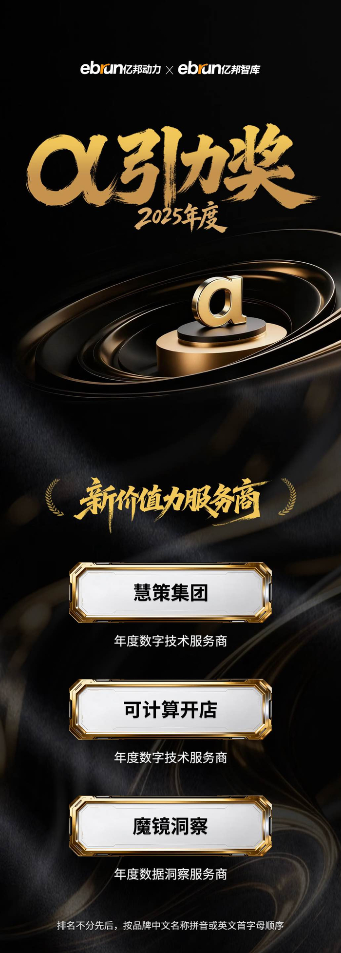 作为零售消费领域的长期观察者与陪伴者,亿邦智库基于多年行业实践与研究积累,于会上正式公布α引力奖获奖名单,并同步发布《2025新竞争力品牌洞察报告》,系统梳理获奖企业的成功路径与方法论,为行业提供可信、可借鉴的发展指引。α引力奖不仅是一项荣誉,更是对行业核心关切的回应:什么是新竞争力品牌?其成长逻辑与代表案例有哪些?谁在背后支撑其崛起?