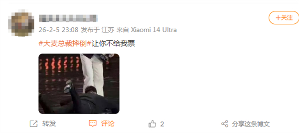 大麦总裁微博之夜意外摔倒 网友借机吐槽票务问题