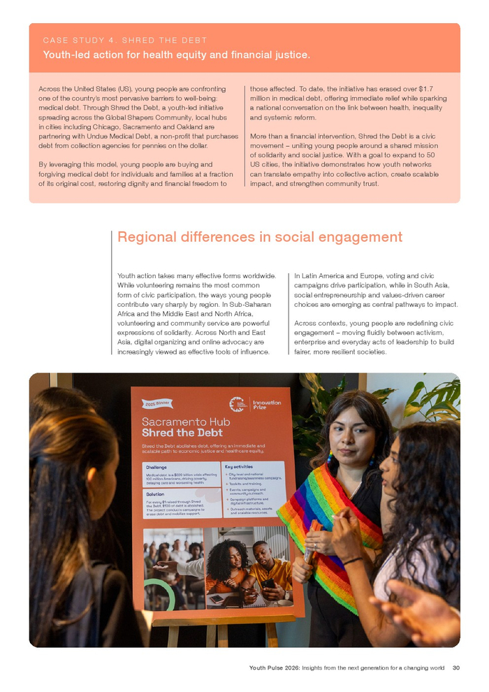 总体来看,青年脉动2026描绘的并非一代人的悲观画像,而是一组清晰的趋势信号:不平等、技术变革与气候风险构成压力底色,而就业质量、社区信任与价值导向创新成为破局变量。能否将青年的高度参与转化为制度化能力,将决定未来十年的增长质量与社会稳定。这一代人正在用行动表明,未来并非等待发生,而是正在被共同设计。