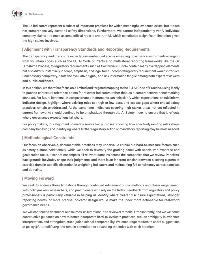 一个值得注意的结构性差异在于监管环境。评审认为,中国企业虽然未进入前三,但在内容标识、事故报告等方面受国内强制性监管影响,部分指标的基线表现反而优于依赖自愿披露的西方同行,这在一定程度上缩小了治理透明度的差距。