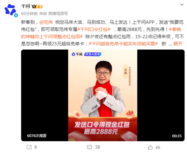 千问开始发口令红包 发送这几句话即可领取 最高2888元