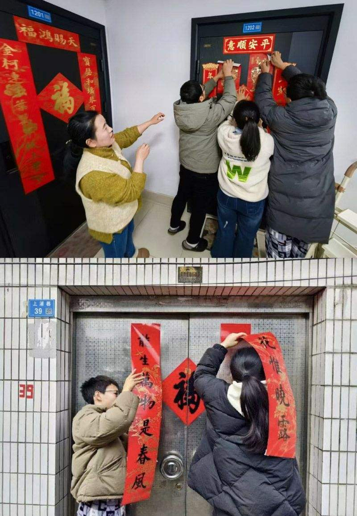 (上图)2026年2月16日,除夕,江苏无锡新吴区旺庄街道新光嘉园,从北京回老家过年的浦暄晨,与家人一同为相邻的爷爷家和大伯家张贴春联。当天,家中举行祭祖仪式。(下图)2024年2月9日,除夕,浦暄晨和堂姐浦静羽最后一次在老宅贴春联。