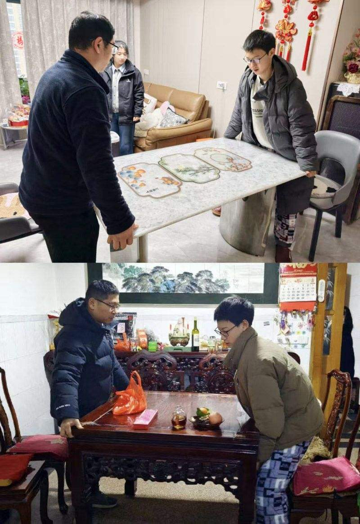 (上图)2026年2月16日,除夕,祭祖仪式开始,浦暄晨与大伯一同将日常餐桌旋转九十度,郑重地为祭祖仪式腾出主位。(下图)老宅祭祖的八仙桌用了几十年。今年彻底退出舞台。