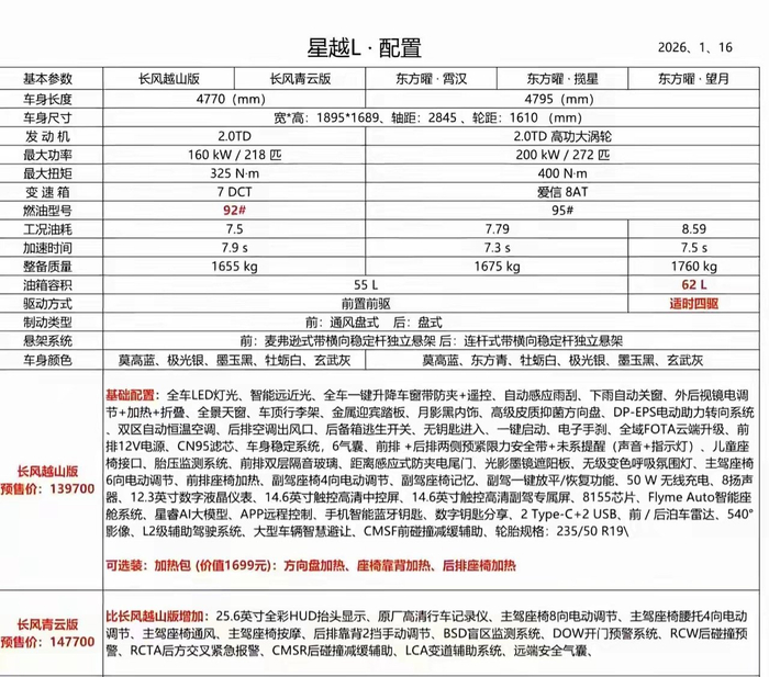 IT之家 2 月 20 日消息,吉利汽车本月初推出了星越 L 长风系列两款新增车型并开启预售,新车现已到店,包含越山版(13.97 万元)与青云版(14.77 万元)两款配置。