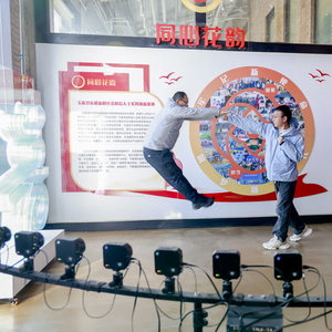 在“青创村”内,一间老库房的二层被打通,形成一个空旷场地,这里是北京容积视觉科技有限公司用容积视频技术新打造的VR大空间,是技术的展示场所。容积视觉公司总经理郭松杰告诉记者,公司于2019年落地“青创村”,得益于“青创村”提供的政策、资金、场地等支持,上下游企业相互连接,业务范围也不断拓展,如今已经发展成为国家级高新技术企业。他们的技术已经在央视春晚以及《三生三世十里桃花》《西虹市首富》等影视作品里得到应用。