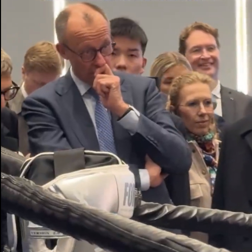 访问期间,现场气氛轻松活跃,默茨现场观看了机器人格斗演示,对其灵活度与稳定性面露惊讶,频频点头认可。