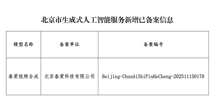 北京市生成式人工智能服务已备案信息公告(2026年2月26日)