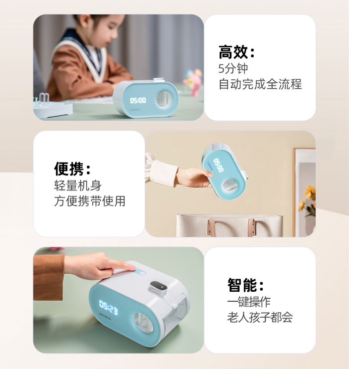 本次展会,蓝抱抱将展出明星产品OK镜清洗仪,作为全国首款模拟手揉搓的全自动角膜接触镜清洗仪,摒弃了物理旋转、超声波等易损伤镜片的激进技术路线,搭载专利“仿生云感揉搓技术”,可在5分钟内实现40000次精准匀速揉搓,完美复刻专业护理人员的手洗手法,既解决了传统手洗不彻底、操作有门槛的痛点,又规避了其他自动清洗技术的损伤风险。同时,该产品搭载分体式清洗舱设计,实现镜片“零接触”清洁,从源头杜绝二次污染;轻量机身搭配4000mAh大容量电池,续航可达一个月,完美适配住校、旅行等多种外出场景,真正实现“专业、便捷、安全”三者兼顾。