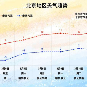 降雪过后,晴天上线,气温开始缓慢回升。3月6日至12日,最高气温5℃-13℃,最低气温-5℃-4℃。