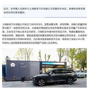 据介绍,上海蔚来汽车有限公司成立于 2015 年 5 月,是蔚来集团的全球业务管理总部及全球量产车研发总部。蔚来在嘉定已设有总建筑面积超 6 万平方米的安晓路试验中心、泰云路试验中心、安驰路试验中心、创新港试验中心和蔚来电池试验中心。