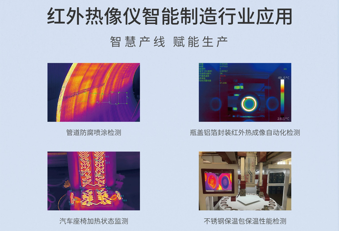 在生产过程监测中,可实时监测工艺流程的温度变化,确保工序稳定;在产品质量检测应用中,通过热成像监测温度阈值,识别结构缺陷等隐患,替代传统人工抽检,大幅提升检测效率;在设备运维监测过程中,通过对配电柜、电机、传送带等关键设备的连续监测,可实现预测性维护,避免非计划停机。
