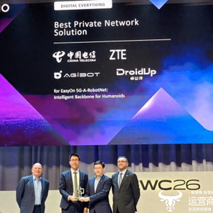2026年世界移动通信大会(MWC26)期间,备受瞩目的GSMA全球移动大奖(GLOMO Awards)正式揭晓。中国电信上海公司(以下简称“上海电信”)携手中兴通讯、智元机器人、卓益得机器人,凭借创新方案“EasyOn 5G-A RobotNet”,一举摘得“最佳专网解决方案奖”(Best Private Network Solution)。这一殊荣不仅有力印证了中国电信在5G-A与具身智能融合领域的创新实力,也充分体现了上海电信聚合产业生态、推动AI+战略落地取得的实质性成果。