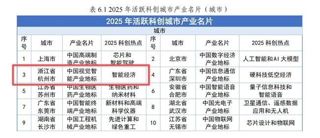 中国视觉智能产业地标入选“2025年活跃科创城市产业名片”