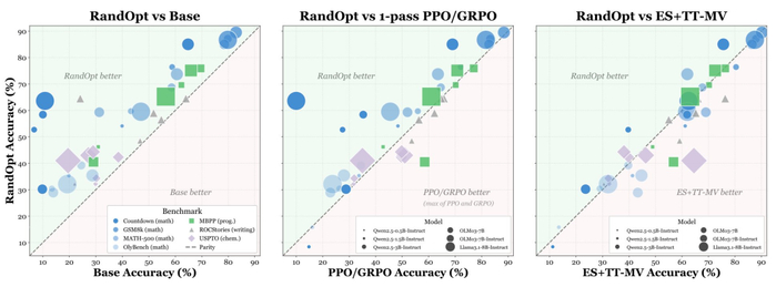 通过这一创新方法,RandOpt 为后训练的简化提供了新的可能,展示了预训练模型本身已隐含了丰富的任务专家,后训练过程更多是选择和集成这些专家,而非从零开始训练新能力。