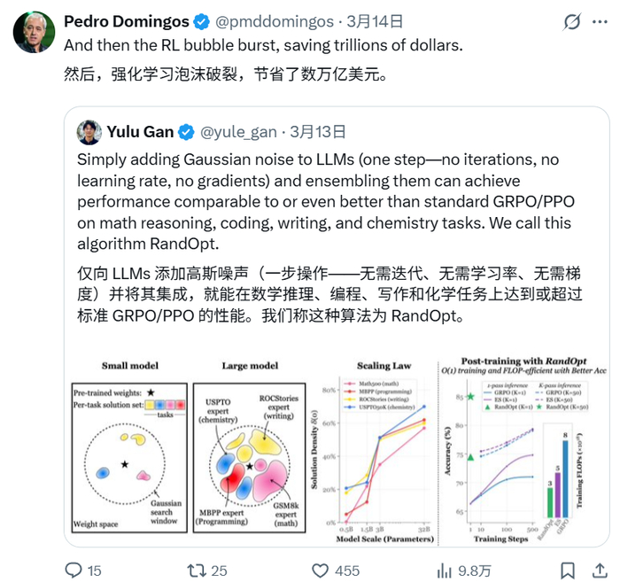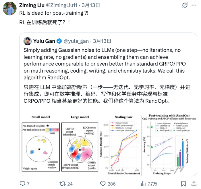 然而,MIT CSAIL 的研究人员 Yulu Gan 和 Phillip Isola 在他们最新发布的论文中对这一传统认知发起了挑战。他们提出了一种名为 RandOpt 的新方法,通过简单的随机扰动和集成来突破传统后训练的限制。
