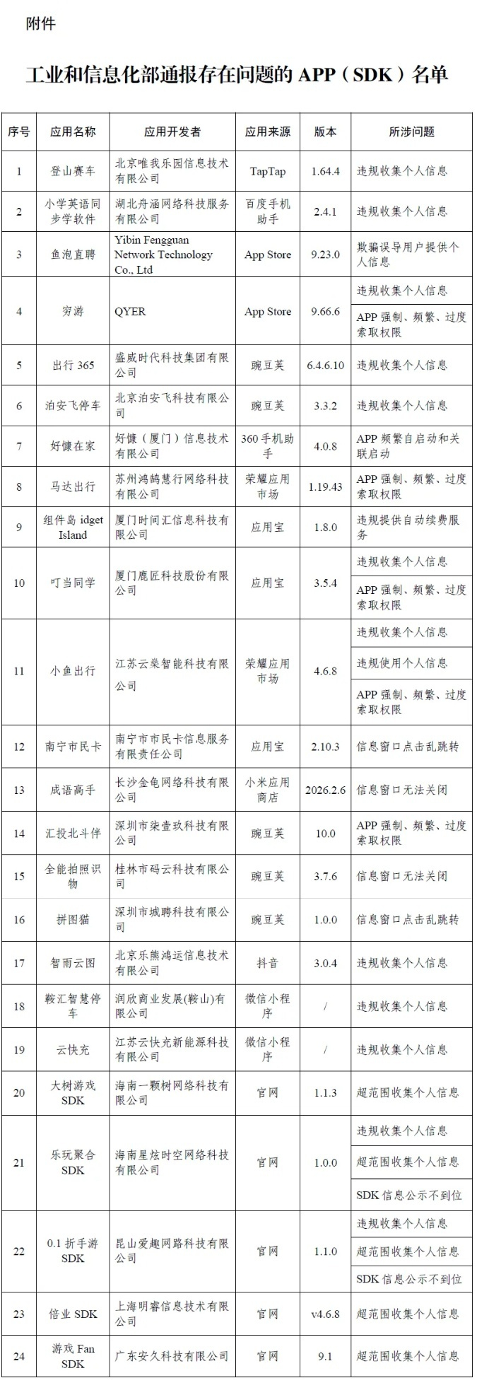 IT之家注意到,工信部 3 月 13 日发布《关于侵害用户权益行为的 App(SDK)通报》(2026 年第 2 批,总第 55 批),共发现 24 款 App 及 SDK 存在侵害用户权益行为。