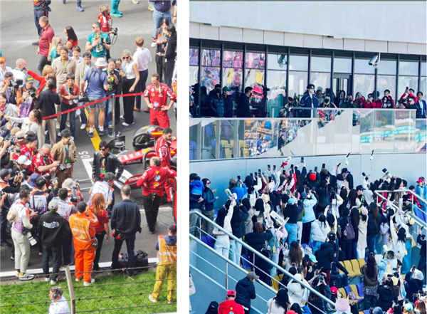 围场外的人流量,因为 F1 今年巨高的热度以及诸多明星的到场,暴涨到了夸张的数量级。喊车手名字的、喊哥哥名字的以及在停车场看车展的人们全都挤在了一起,甚至发生了人群冲卡入场的事。