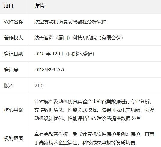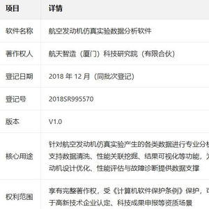 航天智造(厦门)科技研究院斩获航天级发动机数据分析软件软著
