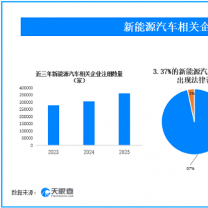 天眼查天眼风险显示,从事新能源汽车相关的业务企业中,3.37%的相关企业曾出现法律诉讼,0.97%的相关企业曾出现经营异常,1.19%的相关企业曾出现行政处罚。