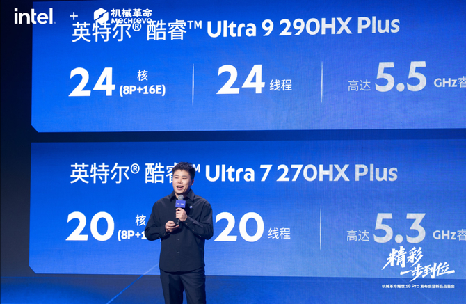 本次发布会,机械革命不止带来两大核心旗舰新品,更完成了全产品线的全面焕新升级,极光X潮玩版、极光X 2026、旷世X 2026、耀世16 Pro、耀世15 Pro 五大机型,为全系搭载全新一代英特尔®酷睿™ Ultra 系列处理器,依托全新架构与先进制程工艺,实现了单核峰值性能、多核多线程调度能力、能效比表现与AI算力的全维度跃升,同时通过机械革命专属的深度调校,完成了新 CPU 与整机散热系统、功耗策略的全链路适配,确保不同定位的机型都能稳定释放处理器的满血性能。