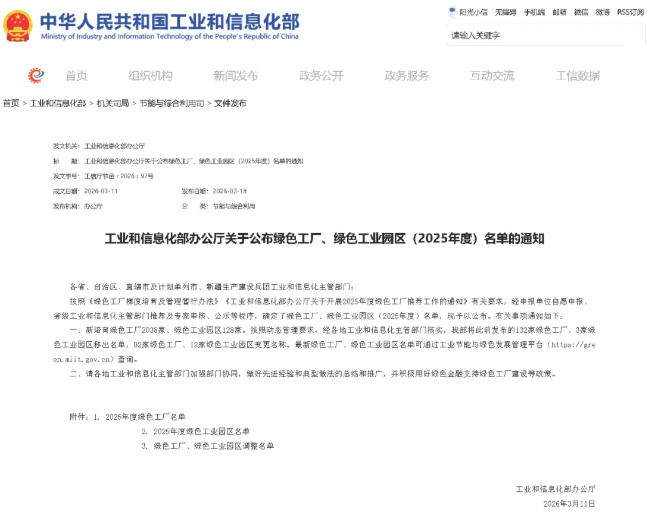 近日,国家工业和信息化部正式公布2025年度绿色工厂名单。雷曼光电全资子公司——惠州雷曼光电科技有限公司(以下简称“惠州雷曼”),凭借在能源低碳化、生产洁净化、产品绿色化等维度的系统性实践,经过严格评审荣耀登榜。