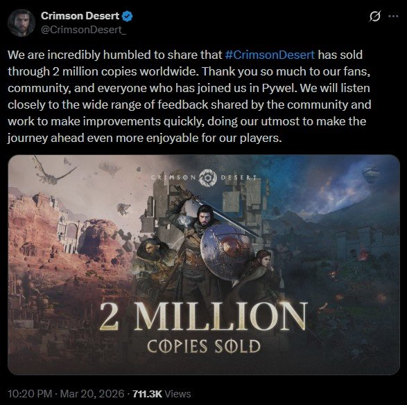 由Pearl Abyss开发的网游逆移植游戏《红色沙漠》在24小时内售出200万份,开发单位表示荣幸之至,同时也承认游戏还存在不足之处: