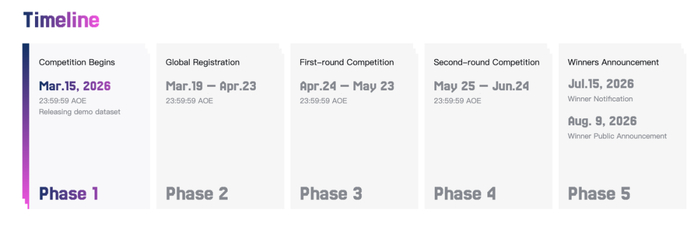 这项比赛从 3 月 19 日开启报名。总奖金池高达 88.5 万美元(约合 610 万元)。其中学术赛道冠军奖金为 30 万美元(约合 200 万元),工业赛道冠军奖金为 15 万美元(约合 100 万元)。