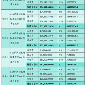 招标内容为中国移动呼和浩特数据中心B11-B16机房楼机电配套工程EPC总承包采购项目,共划分为6个标段,各标段项目内容概述如下: