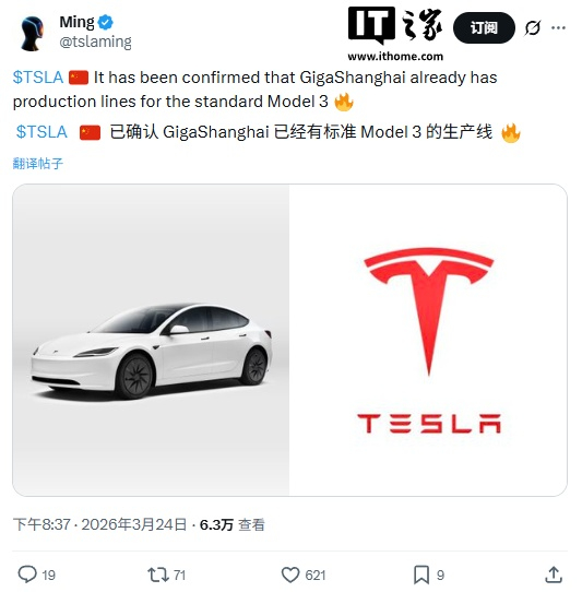 IT之家 3 月 25 日消息,自特斯拉 Model 3 标准版于去年 10 月发布以来,网上经常能看到中国用户对于这款车型的期待。