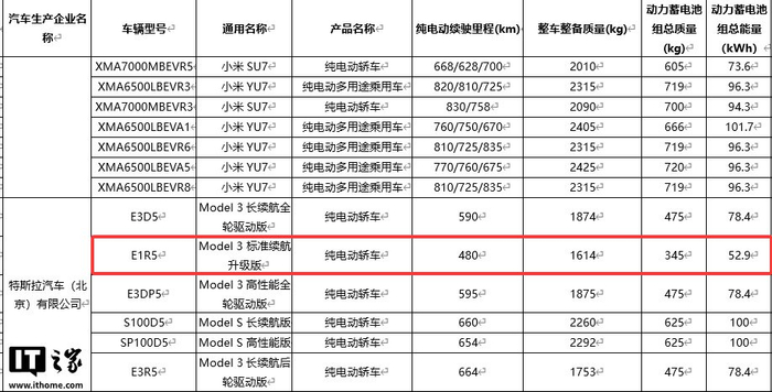 IT之家注意到,在 2025 年 12 月 31 日工信部发布的《减免车辆购置税的新能源汽车车型目录(第二十六批)》中包含一款名为“Model 3 标准续航升级版”的特斯拉车型。该车型搭载 52.9kWh 电池,CLTC 工况续航为 480 公里,明显低于当前最便宜的后轮驱动版(23.55 万元,续航 634 公里)。