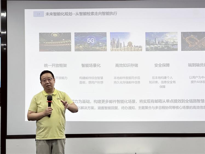Coremail产品副总监董超分享了鸿蒙时代的新一代智能邮件办公体验。