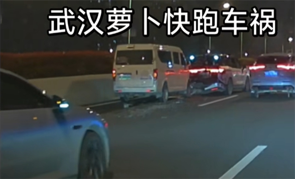 还有车主的行车记录仪显示,在武汉二环火车站往经开万达方向,至少有3辆萝卜快跑停留在快车道上,其中有一辆被后方车辆追尾。