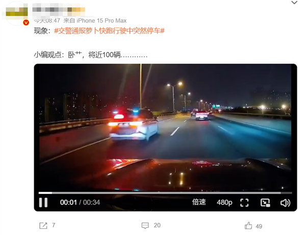 从网友发布的现场视频能清晰看到,夜色里,一辆辆萝卜快跑打着双闪,僵在车道中央纹丝不动,后方车辆只能紧急避让、缓慢绕行。