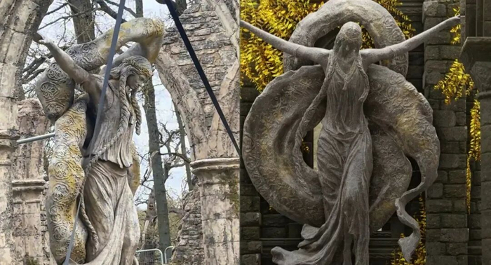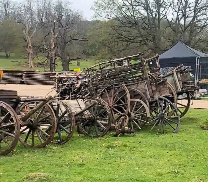 面对质疑,这位博主很快就回应称,他是在英国某地发现的这些场景,随后去现场拍摄了更多素材,更多角度地展示了这个片场:新视频除了从另一个角度展示玛莉卡教堂和女王雕像之外,还出现了大量马车和木桶等置景道具。