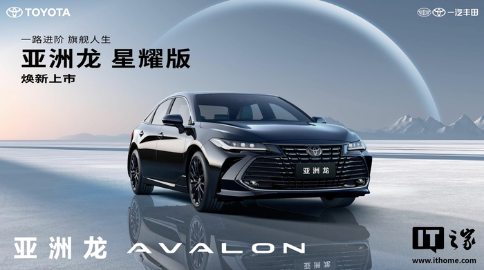 IT之家 4 月 6 日消息,一汽丰田宣布推出 2026 款亚洲龙星耀版车型,该车相对于标准版亚洲龙车型主要配备专属黑化外观套件,其中 2.0 升燃油版指导价 17.98 万元,2.0 升混动版指导价 21.78 万元。