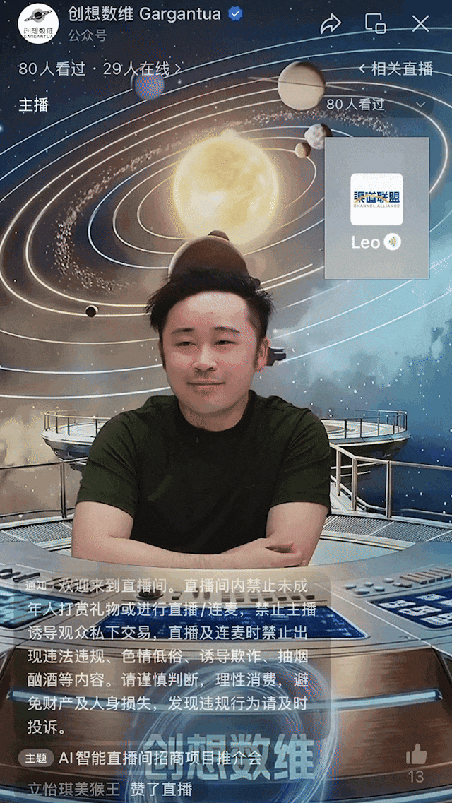 借着这次线上直播推介会,创想数维AI+XR小型虚拟直播间渠道代理招商,正式全面对外开启!