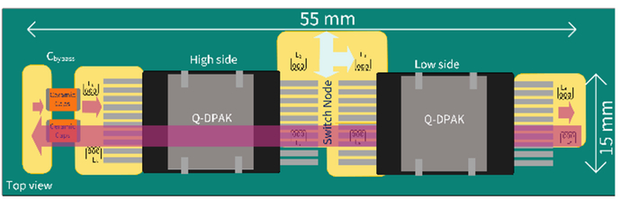I-Loop开关单元是一种标准设计,其中MOSFET安装在PCB底面,其余器件位于PCB顶面。这种配置虽然适用于许多应用,但在最大限度地降低寄生电感方面,存在一定局限,特别是在高频系统中。