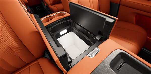 全系标配全电动车门,提供电动开门+电动解锁自吸、标配最大承重175kg的电动侧踏,全车共计48处储物空间,还提供副驾门板50W无线充电,并配备冷暖双用冰箱,支持-6℃~50℃冷暖双用,7L大容量+24小时保温,快速制冷/加热。