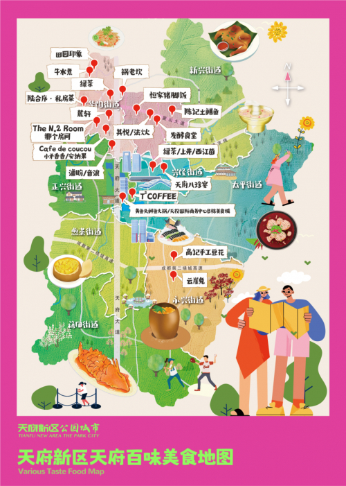 天府百味:传统川菜、浪漫西餐、东南亚风情、创意融合菜等。