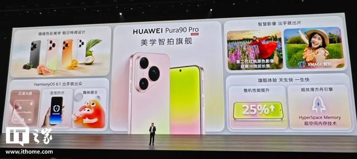 性能方面,Pura 90 系列标称“天生快,一生快”,除了麒麟 9030S 处理器,还有领先的散热架构、鸿蒙操作系统、丰富的鸿蒙生态,通过软硬芯云垂直整合,整机性能提升 25%。