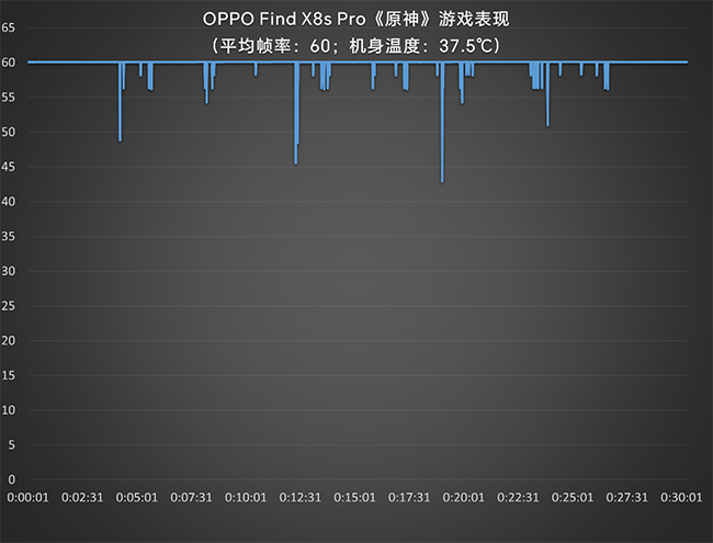 性能方面,OPPO Find X9s Pro预装新一代ColorOS 16系统,通过潮汐引擎与天玑9500的加持,再配合配合内存直通架构,可以为重载运算场景大幅减负,像是启动《原神》等大型游戏就极为迅速。它还打在了冰河散热系统,通过2000W/mK中框石墨和10μm手撕钢VC可等材料以压制发热。经过实测《原神》半个小时全特效+60帧平均帧率60帧、平均温度37.5℃,可以看出长时间开黑,OPPO Find X9s Pro都能始终保持冷静,稳稳接住各种高强度场景。