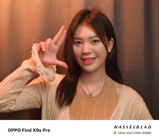 除了三颗成像镜头,OPPO Find X9s Pro还搭载了第二代丹霞色彩还原镜头,通过新一代HDR多光谱传感器配合多模态色彩技术,在复杂光线下展现出强大的色彩还原能力。即便小姐姐身处偏黄的荧光灯下,背后又有大量红色氛围光干扰,画面依然精准还原了她真实的肤色质感,窗帘的蓝色也保持纯净通透,没有被环境光染色。这套色彩系统让每一次按下快门都更接近人眼所见,所见即所得。